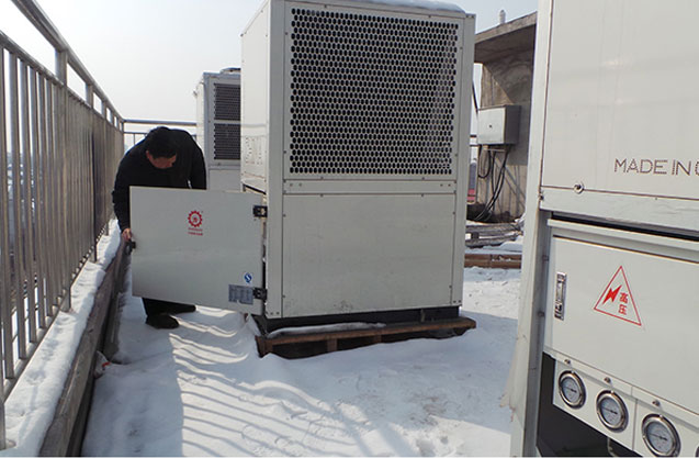 2、室外機最好安裝在冬季主導風的背風面,應設遮雪蓬,機組如安裝在平臺上,則底面應抬高至少20cm,以免化霜結凍,機組吸風口距障礙物至少25cm,雙機之間距離至少20cm。
